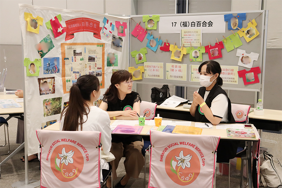 多くの学生さんや就職を希望する方が自身の興味のあるブースを訪ね、熱心に話を聞いていました。